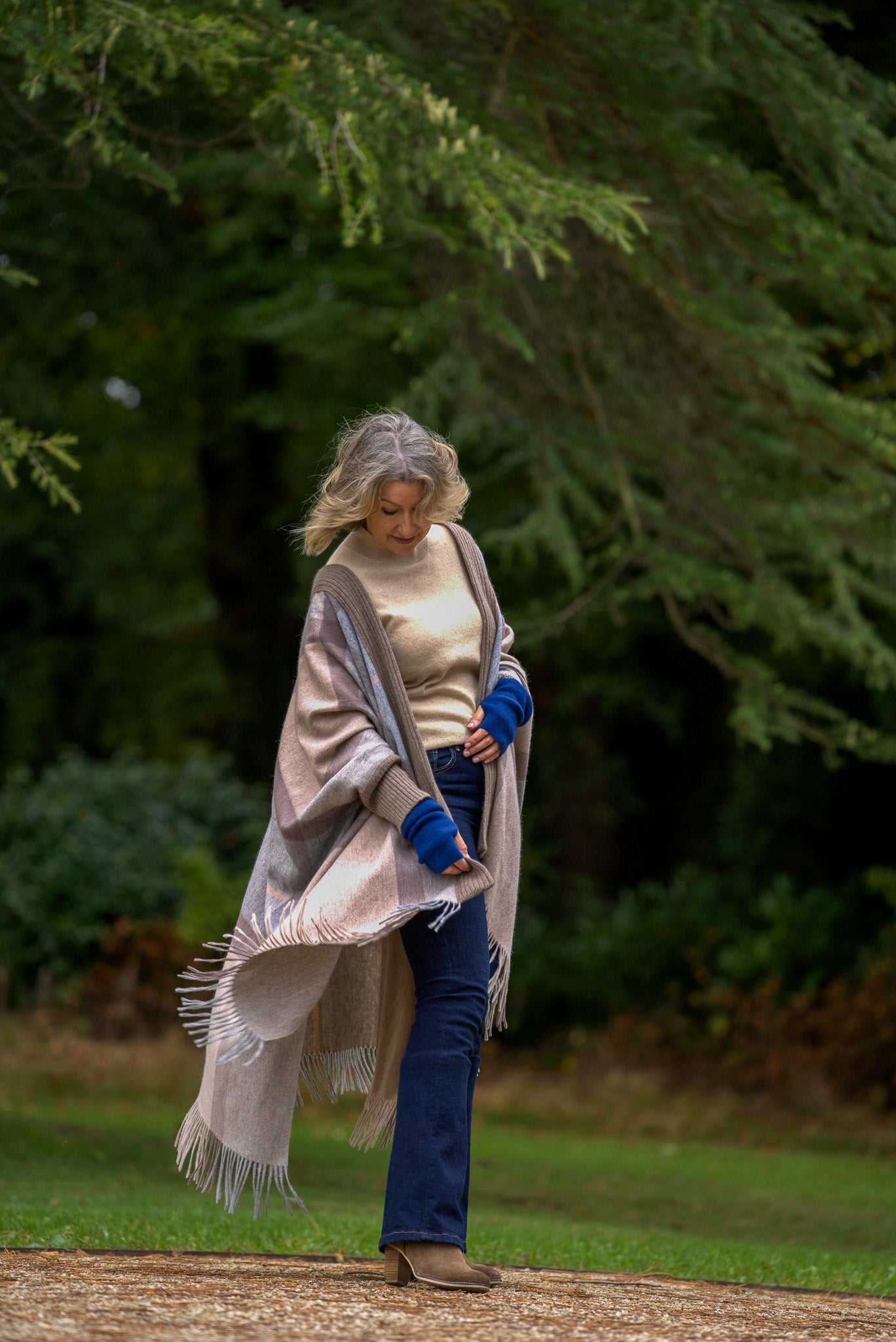 This undyed baby cashmere Celtic wrap offers pure, natural softness and lightweight warmth. Its gentle texture makes it ideal for sensitive skin, providing comfort and elegance in a simple, understated design. Perfect for layering throughout the seasons.